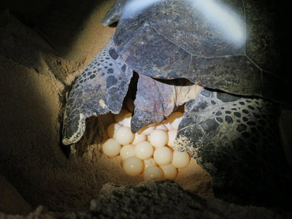Toen ze weg was, graafde de gids de eieren op. Hij legde uit dat de eieren naar een opvangplek gingen waar ze worden uitgebroed. De schildpadden worden namelijk ernstig bedreigd, veel schildpadjes die net uit de eieren zijn gekropen, halen het niet eens tot de zee. Vogels en krabben eten ze voortijdig op. Ook mensen eten de schildpadden of de eieren.