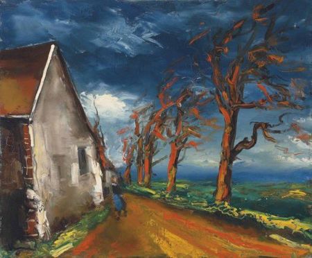 Maurice de Vlaminck was een Frans kunstschilder en graficus. Hij is een belangrijk vertegenwoordiger van de schilderkunst van de 20e eeuw. Zijn ouders waren bohemien muzikanten. Hij begon zijn loopbaan als beroepsmatig wielrenner. In 1896 stopte hij met wielrennen en ging vioolles geven. In 1900 schilderde hij samen met André Derain in de buurt van Parijs. In 1901 bezocht hij een tentoonstelling van Vincent van Gogh in galerie Bernheim. De Vlaminck was erg onder de indruk van deze tentoonstelling. In 1905 sloot hij zich met Henri Matisse en André Derain aan bij Les Fauves (de wilden). Hij exposeerde in 1905 in de Salon d’Automne in Parijs. Dynamische lijnvoering en felle kleuren waren kenmerken van zijn werk. Al in 1908 keerde hij zich af van het fauvisme en begon op impressionistische wijze te werken.