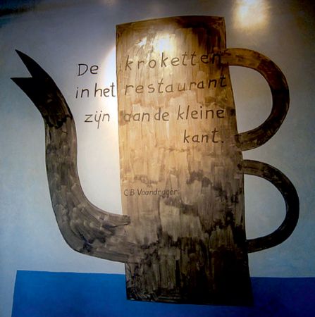 “De kroketten in het restaurant zijn aan de kleine kant”, zo staat te lezen op een muur in Hotel New York in Rotterdam, tegen de achtergrond van een koffiekan van Klaas Gubbels. Het is een eerbetoon aan de één van de grootste dichters van de stad: Cornelis Bastiaan Vaandrager (1935-1992).