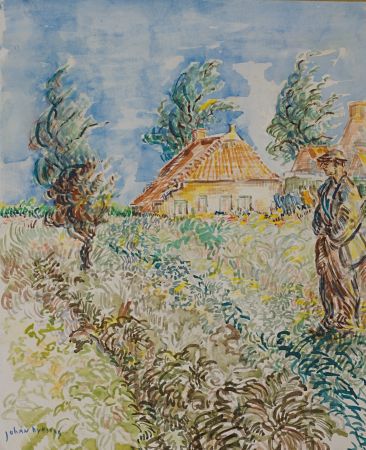 Blauwborgje van Jan Altink toont het oude boerderijtje van boer Schuitema en zijn vrouw. Altink beschouwde dit idyllische stukje natuur aan de verweerde Reitdiepsdijk als zijn tweede huis. In de volgende tekst schetst de dichter Jan Boer een levendig beeld van zijn vriend Altink, schilderend op de Reitdiepsdijk: ‘Dan zag je die kalme, gevoelige man daar zijn schilderezel opzetten in de luwte van de dijk. Zijn hoed wipte achter op zijn hoofd en dan begon hij met grote, drieste vegen zijn onderwerpen af te bakenen.’