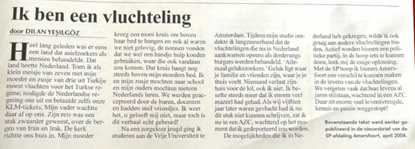 Wat veel mensen niet weten, is dat Yesilgoz uit de linkse hoek komt. In 1999 was ze bestuurslid van de SP, afdeling Amersfoort. Ze schreef zelfs een artikel in de nieuwsbrief van de SP ‘Ik ben een vluchteling’. Ze zette zich in voor vluchtelingen en organiseerde in 2004 zelfs de actie ‘Van Harte Pardon’ tegen het strenge asielbeleid van toenmalig VVD-minister Rita Verdonk.