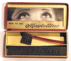 In de sixties kocht je voor 75 cent mascara uit een doosje bij de Hema. Borsteltje nat maken, even door de smurrie halen en vervolgens aanbrengen op je wimpers. Klontjes weghalen en klaar! Helemaal kek was de witte lipstick, ook 75 cent bij de Hema. Mijn moeder was had dat ten strengste verboden, volgens haar zag ik er dan uit alsof ik een hartaanval kreeg. Eyeliner mocht ook niet, dan was ik net een mijnwerker, vond mijn vader, die jarenlang mijnwerker was geweest.