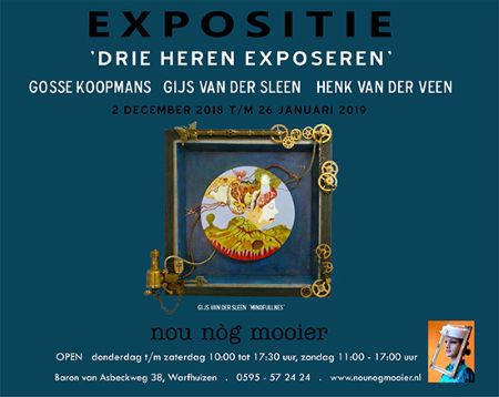 Expo Drie Heren Exposeren / Exposities Kunst HomeExpo Drie Heren Exposeren 1 2 ► De expositie Drie Heren Exposeren was te zien van 2 december 2018 t/m 26 januari 2019. Gosse Koopmans, Gijs van der Sleen en Henk van der Veen stellen hun werken tentoon, varierend van landschappen tot stillevens.