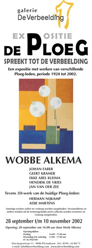 In 2002 werd ons een kans geboden om werken van o.a. Wobbe Alkema tentoon te stellen in onze galerie De Verbeelding te Saaksum. Het toeval wilde dat de zoon van Wobbe Alkema, Henk Alkema, ook in Saaksum woonde. Hij bezocht regelmatig onze galerie, Wij praatten veel over kunst en op een gegeven moment liet hij weten dat hij het leuk zou vinden als zijn collctie van zijn vader en sommige ploegleden bij ons tentoongesteld kon worden. Hij was een paar keer benaderd door andere galeries en musea, maar hij voelde er niets voor om de collectie bij hen tentoon te stellen. Om de een of andere reden gunde hij het ons, natuurlijk ook omdat onze galerie sinds kort in zijn dorpje stond. Iedereen was verbaasd dat wij nog niet eerder vertoonde werken van Wobbe Alkema zouden exposeren. Een hele eer!