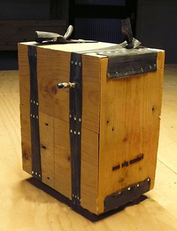 In opdracht maakte Jack een houten opvouwbaar koffertje. De sluitingen maakte hij van fietsbanden.