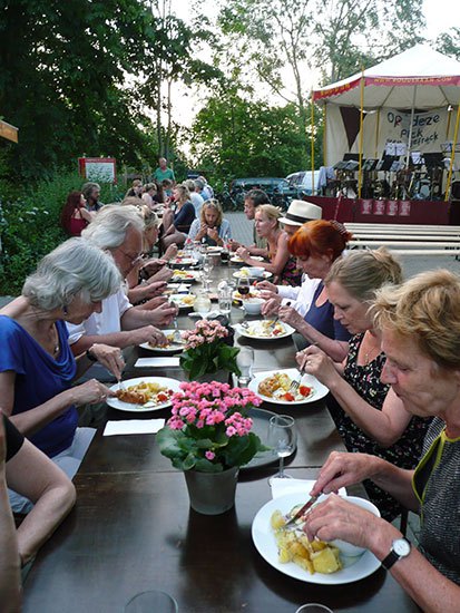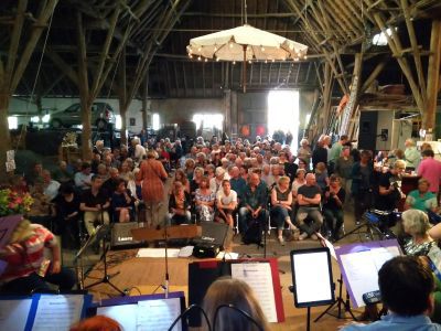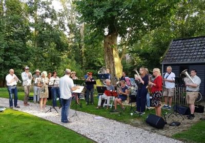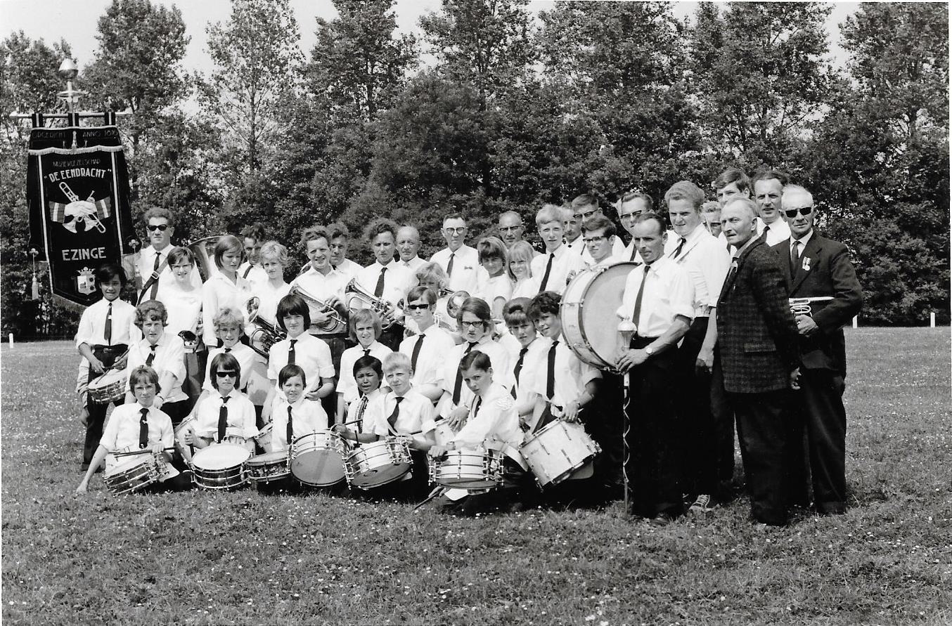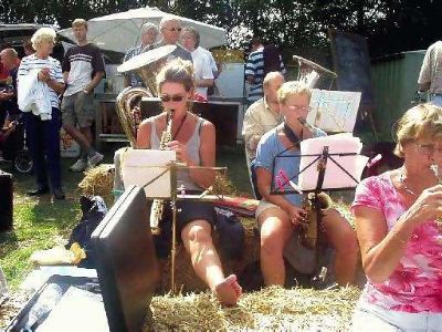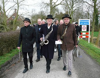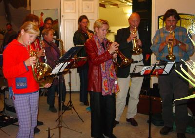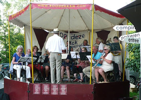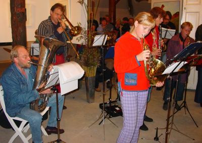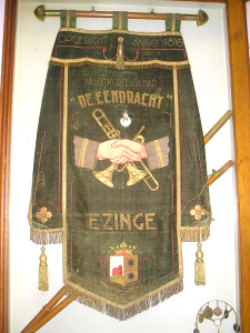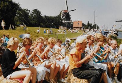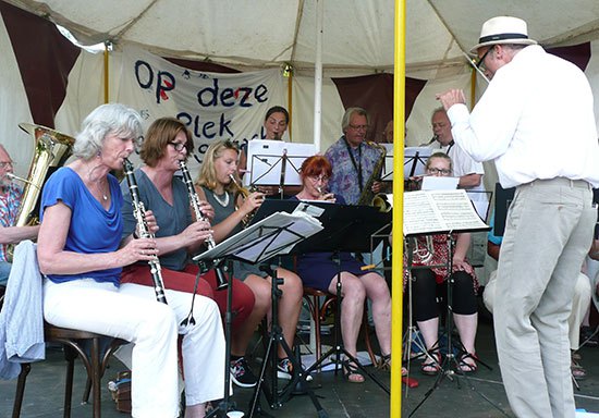 In 2001 verhuisden mijn lief Jack en ik vanuit de wereldstad Rotterdam naar Saaksum, een piepklein dorpje boven de stad Groningen. Het dorp telde 1o1 inwoners, dus binnen enkele dagen kenden we iedereen. Het bleek dat een paar Saaksummers bij muziekgezelschap De Eendracht speelde, in het nabij gelegen dorpje Ezinge. De Eendracht speelt een belangrijke rol in het sociale leven in de regio. Zo geven ze een aubade, bijvoorbeeld als iemand een respectabele leeftijd heeft bereikt of een gedenkwaardig jubileum te vieren heeft. Uiteraard spelen ze vaak bij festiviteiten zoals de intocht van de Sint of op koningsdag. De opening van onze galerie in 2001 werd met vrolijke deuntjes opgeluisterd door De Eendracht. Jack werd meteen verliefd en is even later lid geworden van De Eendracht.